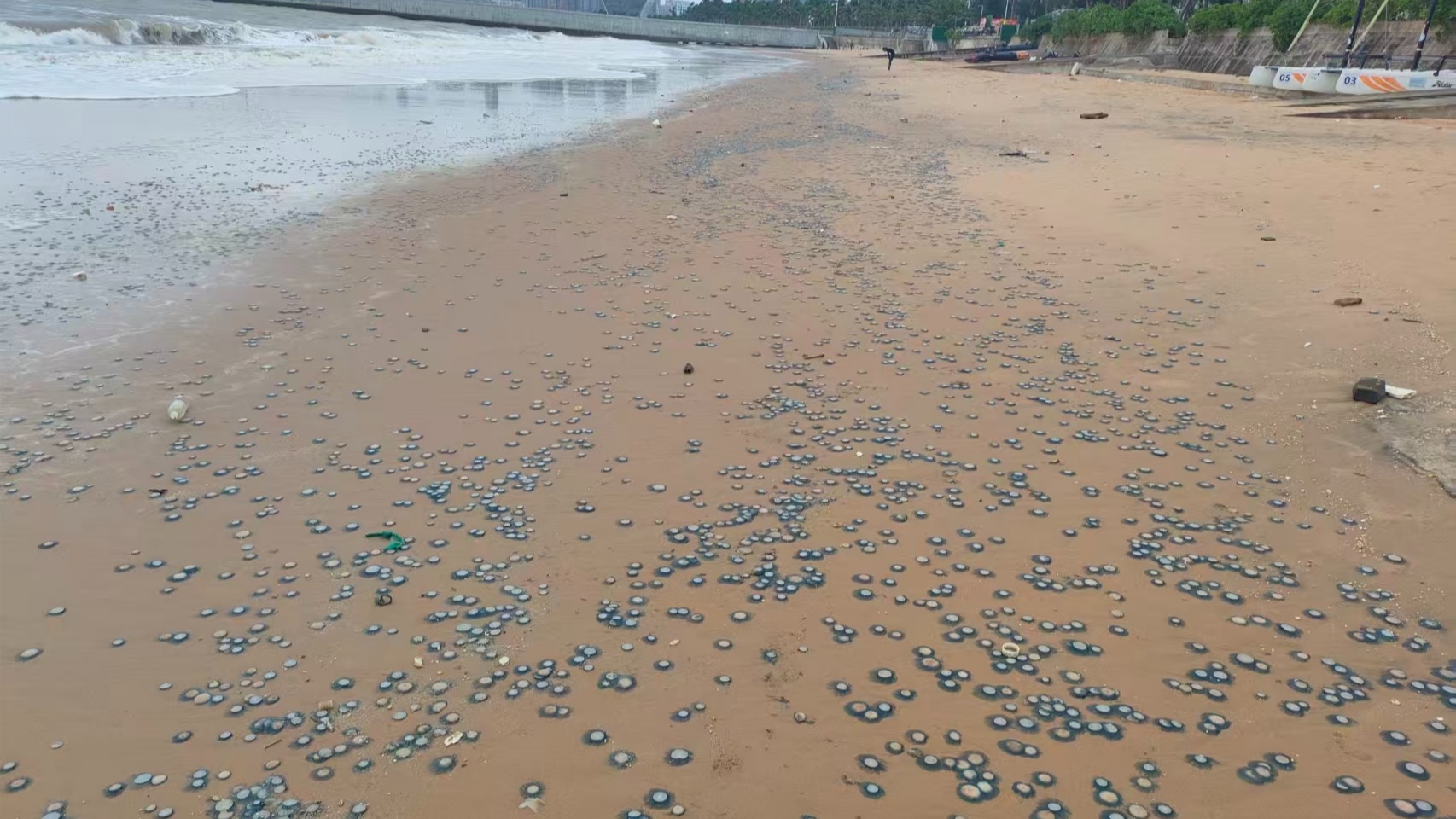 海口西海岸出現(xiàn)大量銀幣水母 專家:有毒,應(yīng)避免主動觸碰!